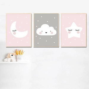 This set of two Up In The Sky Canvas Prints with pretty Moon, Cloud, and Star will convert your kid's room into a gorgeous sky.