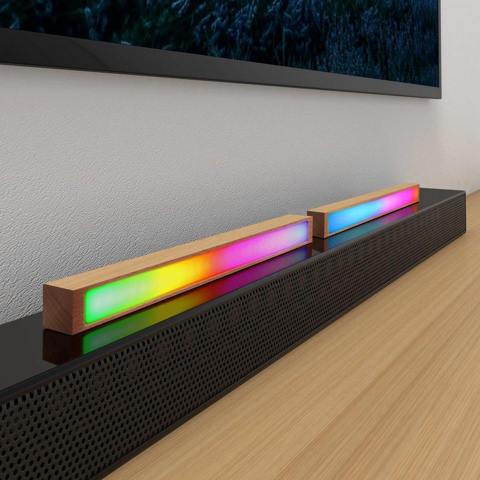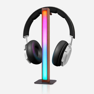 Bring your music to life with the Aura Stand, an intelligent RGB LED headphone stand that elegantly changes colours and patterns to match your music. This sleek wooden design holds your headphones and doubles as a stylish LED lamp. Elevate your music experience with the AuraStand!