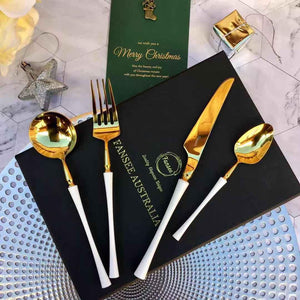 - This Gold and white cutlery set is delivered in a stylish box, making a perfect gift for your loved ones.