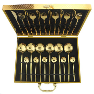 24 Pcs Matte Finish Gold Cutlery Set Gift Box