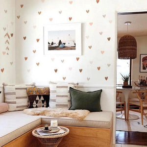 A boho style Hearts Wall sticker that is light and elegant while still adding a little bit of "LOVE" to your wall. These PVC stickers are tear-free, waterproof, and easy to handle and clean.
