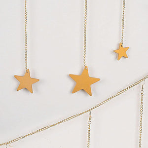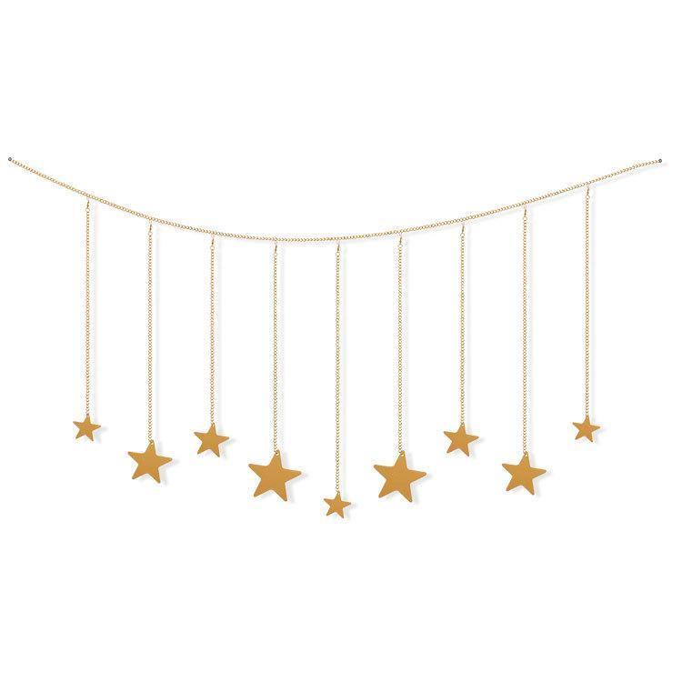 - This Star Garland is made from wood and iron chains with a gold metallic finish.