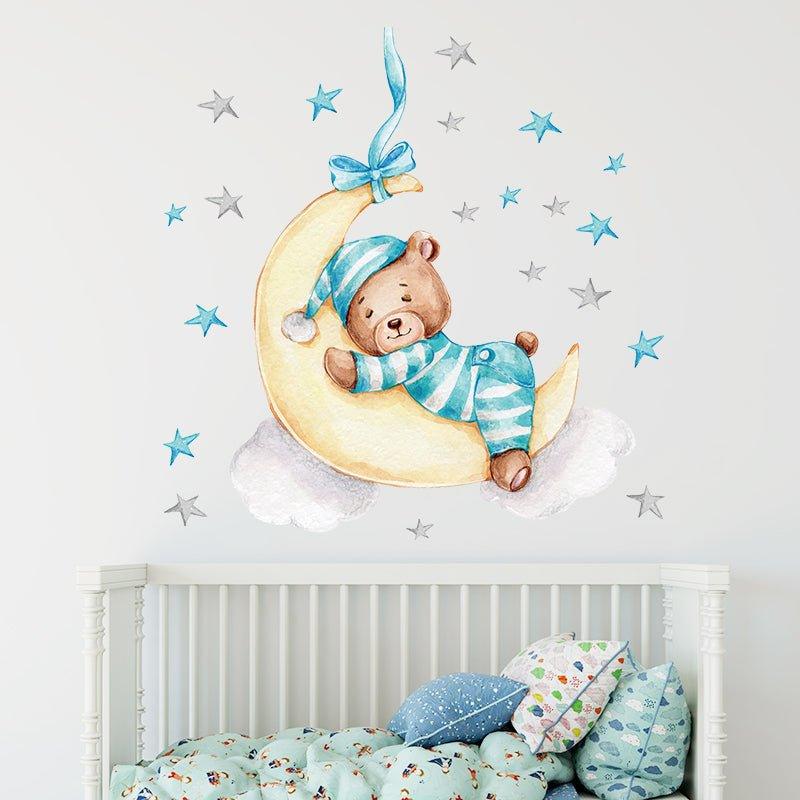 This Baby Bear Sleeping On Moon Wall Sticker is lovingly created and offers the most adorable wall decor for the nursery. These wall stickers are tear-free, waterproof, and easy to handle and clean.