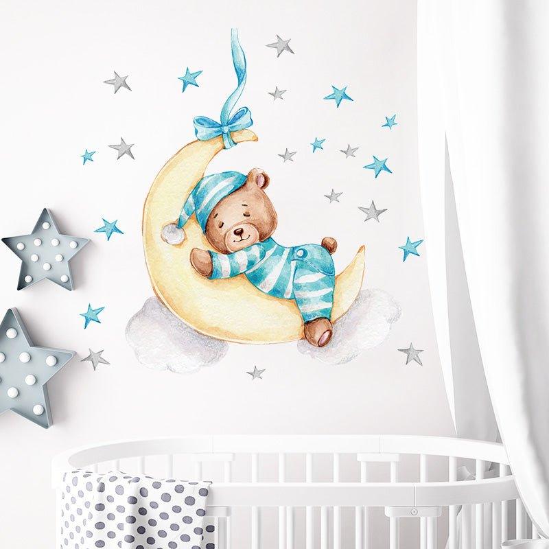 Adorable Baby Bear Sleeping On Moon Wall Stickers