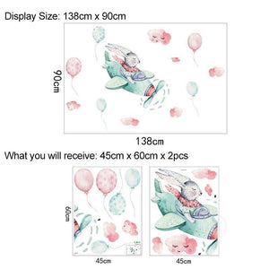 Inspire your little one with these Bunny Flying Aeroplane Wall Stickers. It will bring a magical touch to your nursery wall. These Wall Stickers are DIY products that can be pasted randomly to display your infinite imagination.