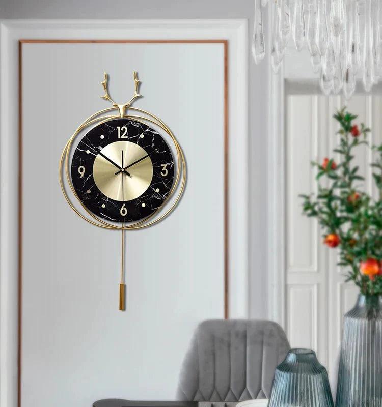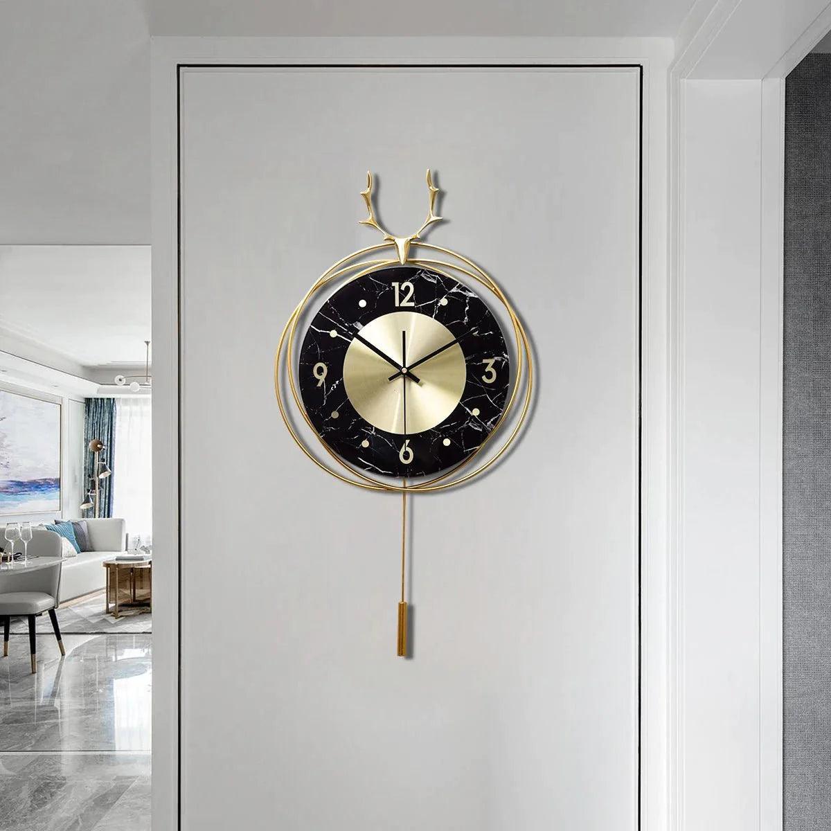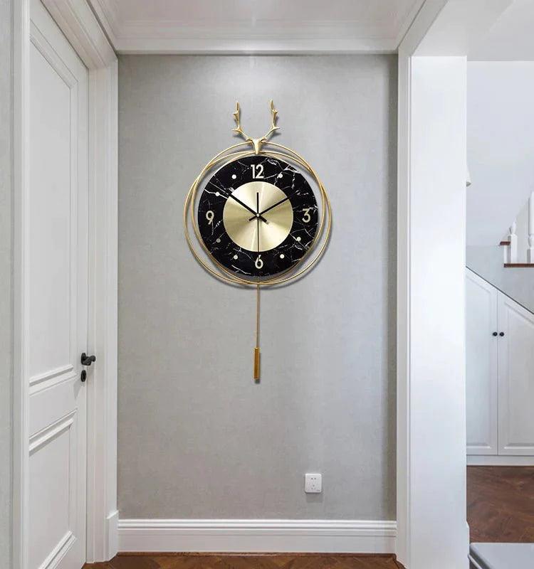 Add a touch of sophistication to your home with our Deer Head Metal Luxury Wall Clock. Crafted with a metal and a golden deer head on top, this lovingly made decor piece exudes elegance and exclusivity. Keep time in style and make a statement with this luxurious addition to any room.