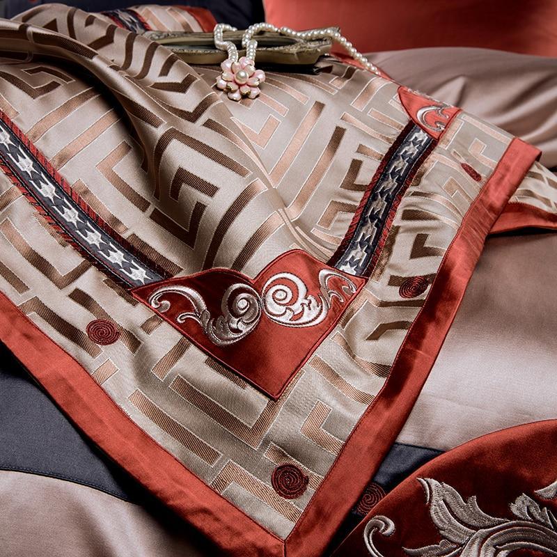 Bring Luxury to your home with the unique beauty of Jacquard fabrics. This Deluxe Jacquard Silk Quilt Cover Set is durable and stable, Strong and resilient, Wear and wrinkle resistance, Pleasant to the touch, filled with decorative aesthetics.