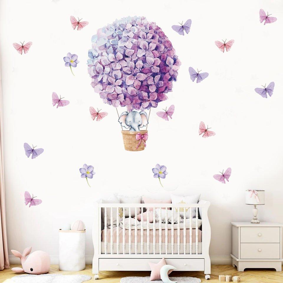 Transform any nursery into an imaginative wonderland with this Elephant on Purple Flowers Hot Air Balloon Kids Room Wall Stickers! These stickers are easy to use and remove and feature a unique, colourful and fun design, making them the perfect decor for any nursery. Bring unique style and charm to a child's bedroom with this one-of-a-kind wall décor.