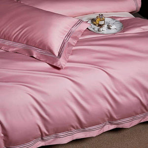 Premium Embroidered Quilt Cover Set - Pink - Decor Home