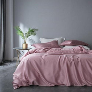 If you love simple, solid shades of colour for your bedroom aesthetic, then this Premium Quality Tencel Silk Quilt Cover Set in pink is a great fit.