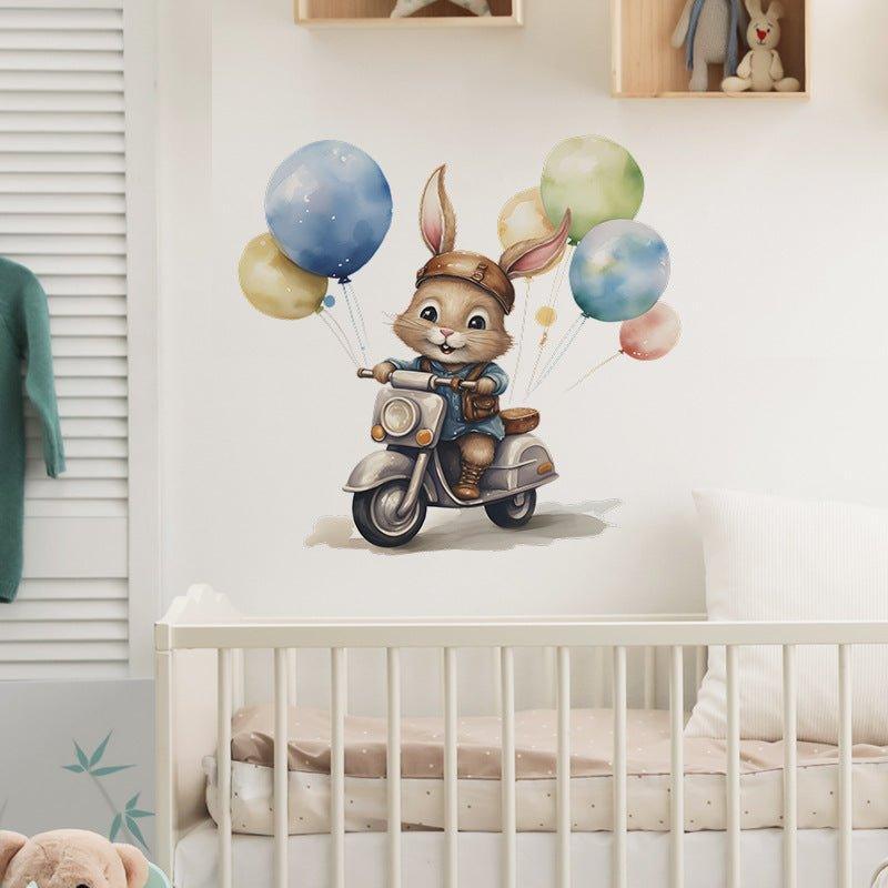Rabbit's Balloon Motorcycle Ride Wall Stickers