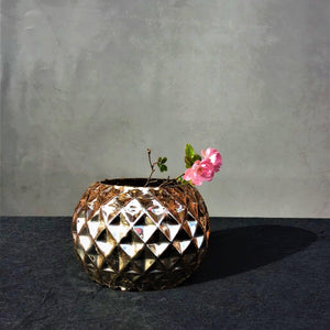 With the diamond cut, elegant shaping, mirror finish, this Round Golden Vase reflects an eclectic style to accent your home décor.